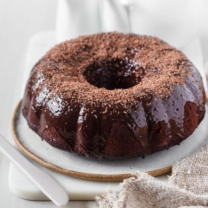 This Chocolate Bundt Cake, infused with cocoa and espresso, features a rich ultra-moist crumb and velvety dark chocolate ganache. Best enjoyed with whipped cream or fresh berries for a decadent treat!
