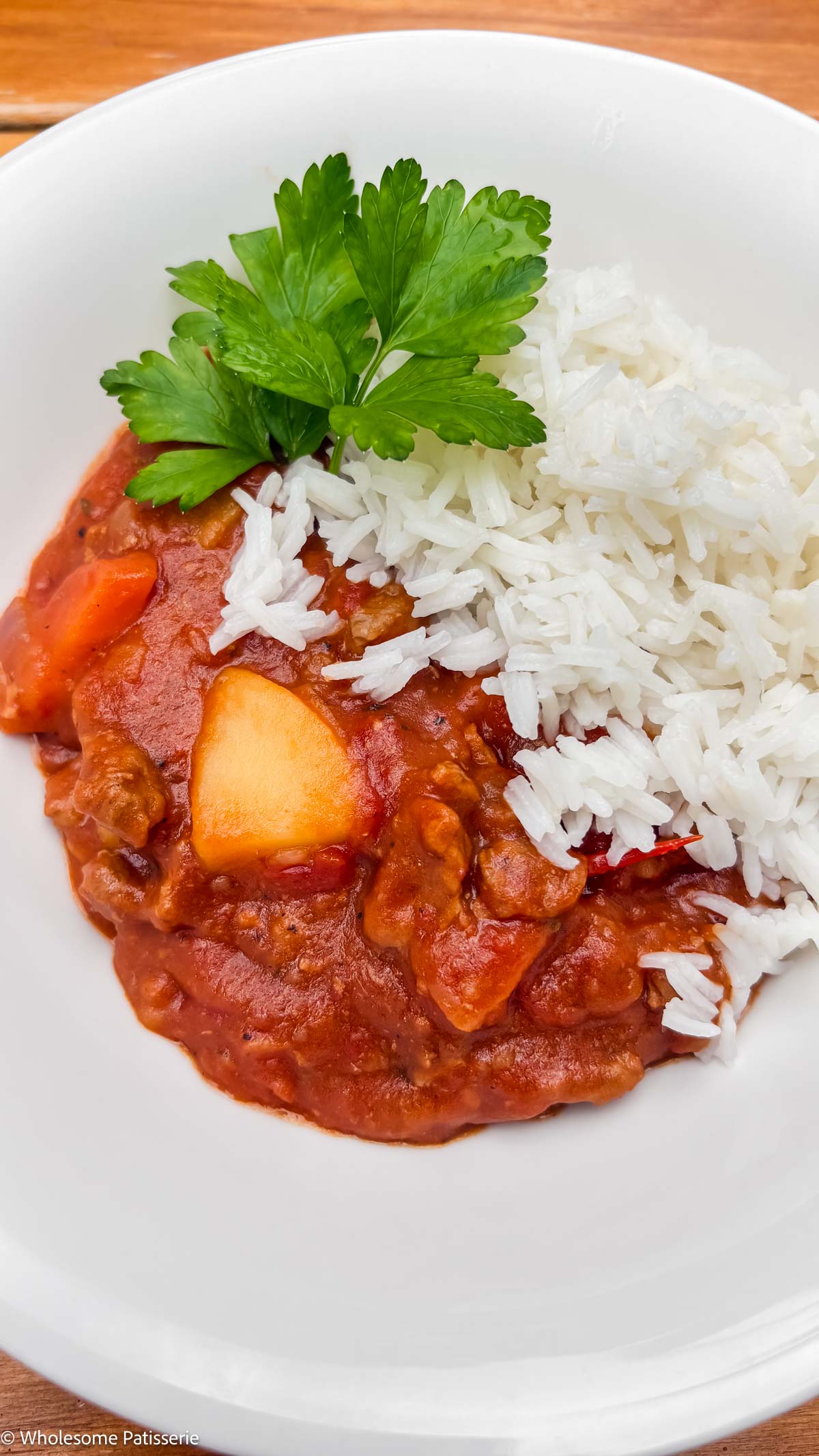 No Wine Needed – Rich flavour develops from tomatoes, herbs, and slow simmering.