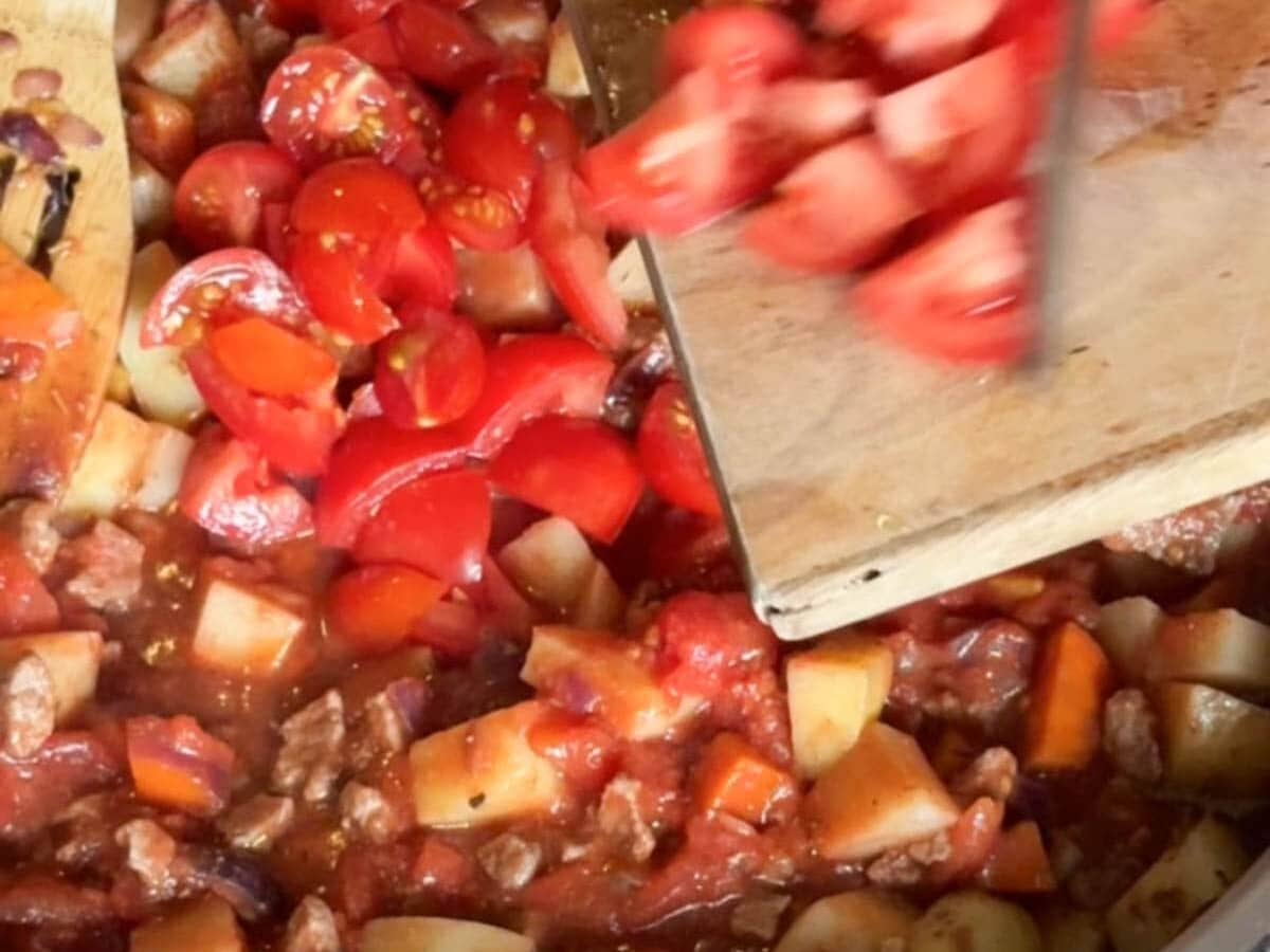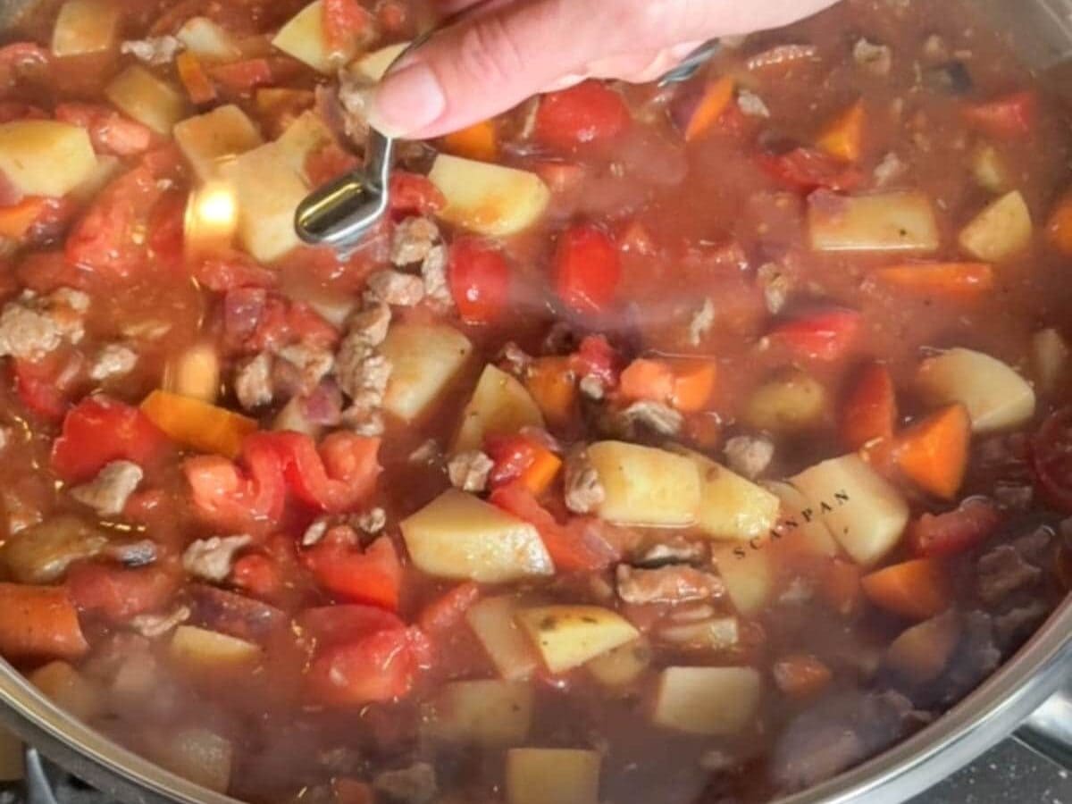 - Simmer Stew: Once boiling, reduce the heat to low, cover with a lid, and simmer gently for 45–50 minutes, stirring occasionally.