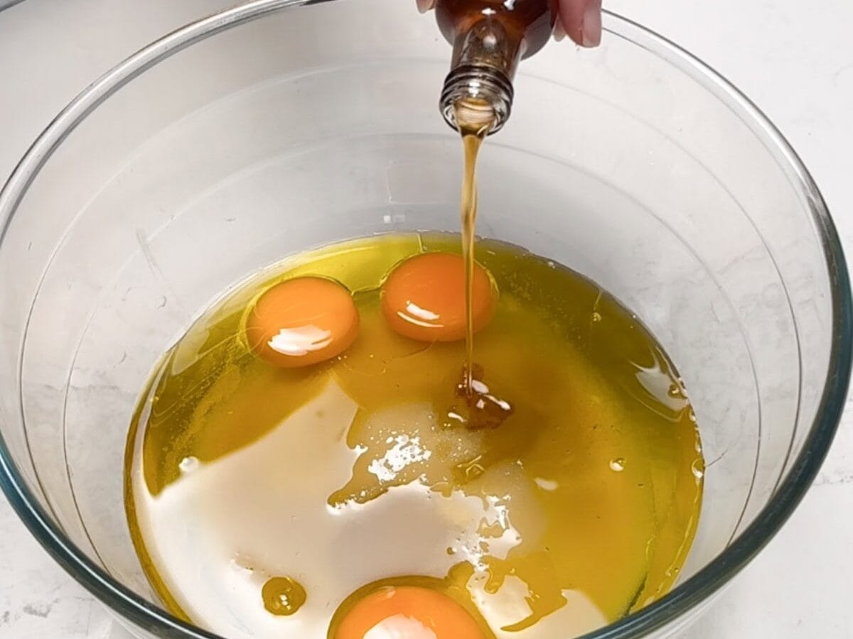 - Combine Sugar and Wet Ingredients: In another large mixing using electric hand beaters or a stand mixer with the paddle or whisk attached, add the sugar, eggs, oil, and vanilla extract. Beat for 1 minute until well combined. Scrape down the sides.