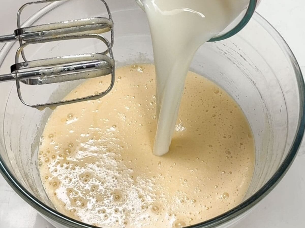 Step 3: Beat in the sour cream and milk for about 15 seconds until well combined.