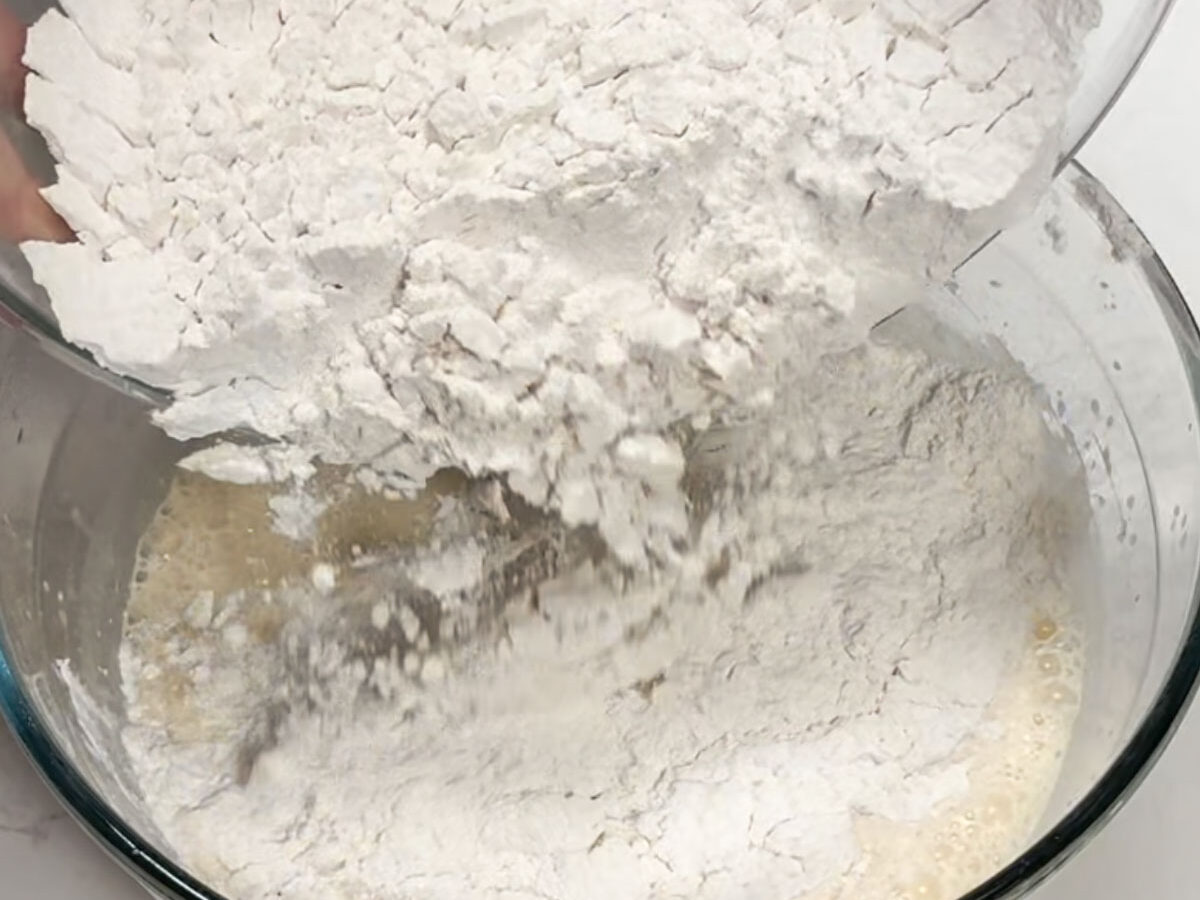 - Incorporate Flour Mixture: Add half of the flour mixture to the wet ingredients, beat on low speed until just combined, then add the remaining flour mixture and beat on low until just incorporated, it’s ok if some flour is still visible, switch to a spatula to finish off mixing any remaining streaks of flour, being careful not to overmix as it can cause the bread to turn out tough and dense after baking.