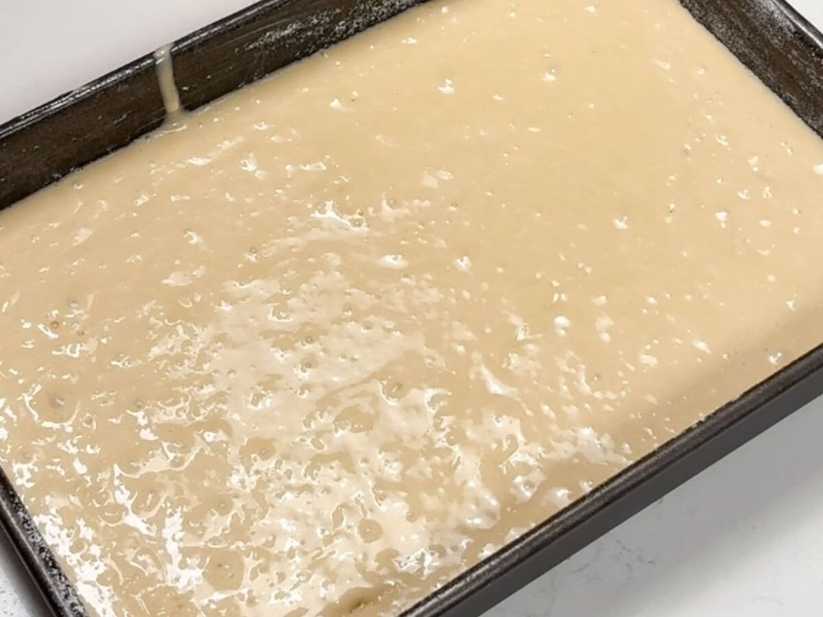 - Transfer Batter: Pour the batter into the prepared baking pan, smoothing the top with a spatula.