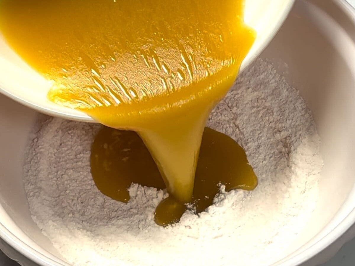 Step 3: Pour the wet mixture into the dry ingredients.Â
