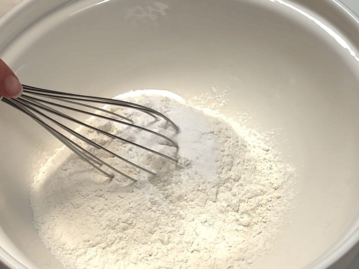 Step 1: In a large mixing bowl, whisk together flour, baking powder, baking soda, and salt. Set aside.