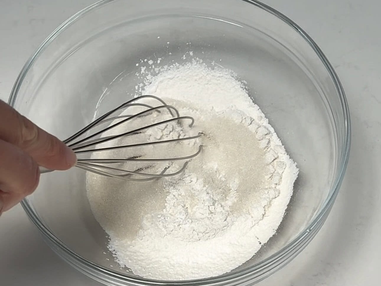 - Mix Dry Ingredients: In a small mixing bowl, whisk together the flour, cornstarch, sugar, baking powder, and salt until evenly combined.