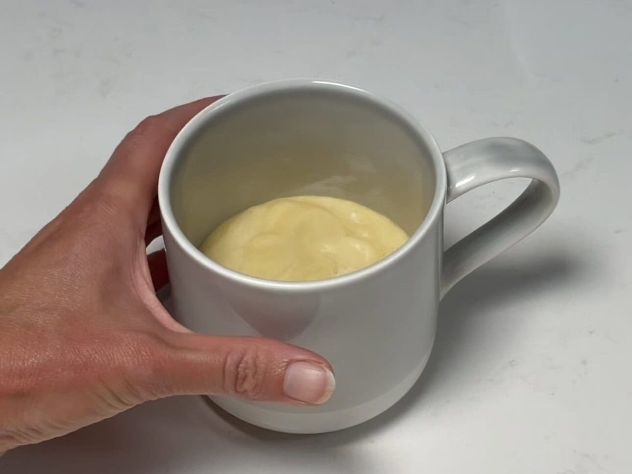 Tip: If your mug is slightly smaller or larger, you may need to adjust cooking time by a few seconds. Look for the top to be set but still slightly soft.